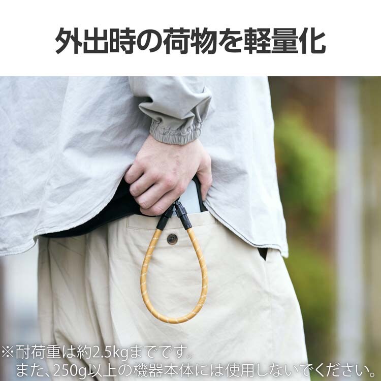 ●お出かけや出張などの外出時に、ストラップと充電ケーブルを2つ持ち歩く必要がなく、荷物を軽量化できます。