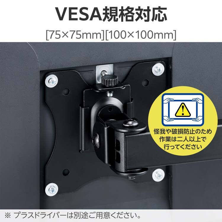 ●VESA規格(75mm×75mm、100mm×100mm)に準拠したモニターに対応しています。