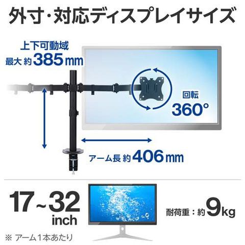●17インチから32インチのモニターに対応する、モニター用アームです。