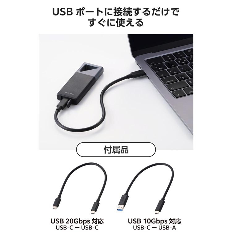 ●USB 20Gbpsに対応したUSB Type-C - USB Type-Cケーブル、USB 10Gbpsに対応したUSB Type-C - USB-Aケーブルが付属しています。