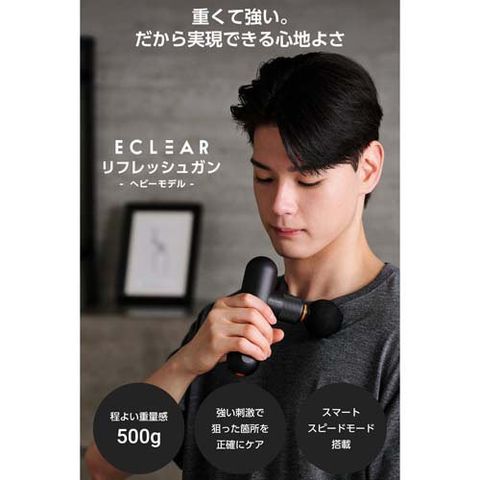 | ・販売名:ECLEAR リフレッシュガン -ヘビーモデル- ・電源(定格入力):DC5V/2A ・給電方法:充電式 ・充電時間:約3時間 ・駆動時間:約5時間(満充電、モード4使用時、無負荷) ・タイマー:10分 ・振動回数:スマートスピードモード:1200~3000rpm、モード1:1200rpm、モード2:1800rpm、モード3:2500rpm、モード4:3000rpm ・サイズ(本体のみ):幅約85mm×奥行約41mm×高さ約164mm ※アタッチメント除く ・質量(本体のみ):約485g ※アタッチメント除く ・カラー:ブラック ・材質:本体:アルミニウム合金、アタッチメント:ABS樹脂・EVA樹脂・シリコーンゴム ・使用環境温湿度:温度5~40度/湿度25~70%RH(結露なきこと) ・保証期間:1年間 |