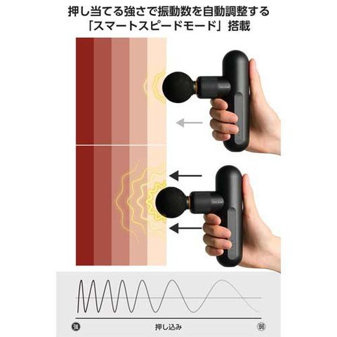 ●押し当てる強さによって1200-3000rpmの振動数を自動で調節する「スマートスピードモード」を搭載。ボタンで切り替える手間なく、その日のコンディションや部位に合わせて手軽に振動速度を調節できます。