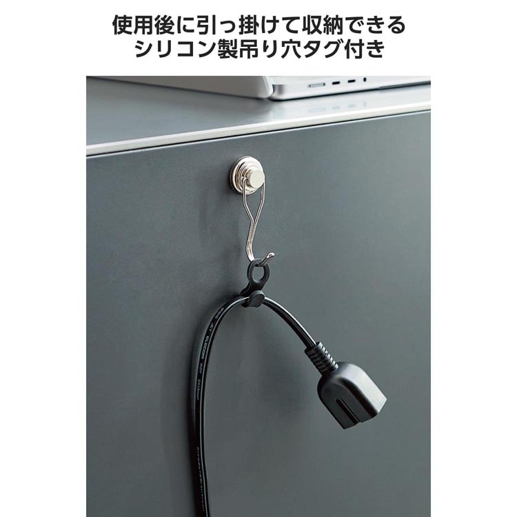 ●直径10mmのシリコン製吊り穴タグを付属。使用後はフックなどに引っ掛けて収納できます。