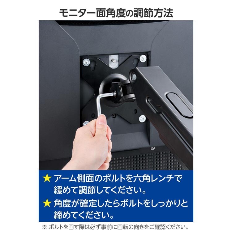 ●モニターの使用角度が決まったら、接続部のネジをしっかりと締めて固定してください。