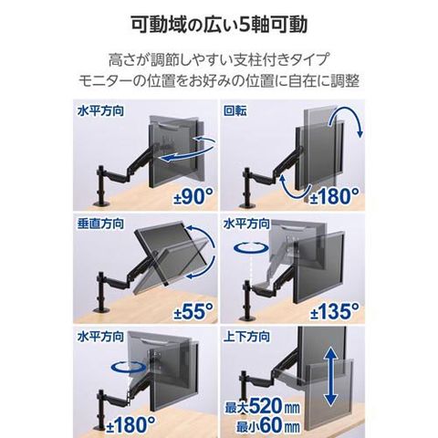 【エレコム モニターアーム シングル ガススプリング式 黒の商品詳細】