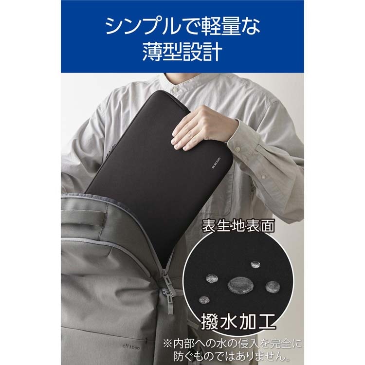 エレコム パソコンケース 15.6インチ 撥水 薄型 耐衝撃 ダブルファスナー ブラック (1個)