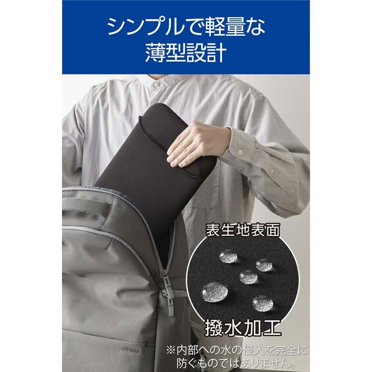 ●ポケットを省いたシンプルな設計で、かばんの中でも邪魔になりません。