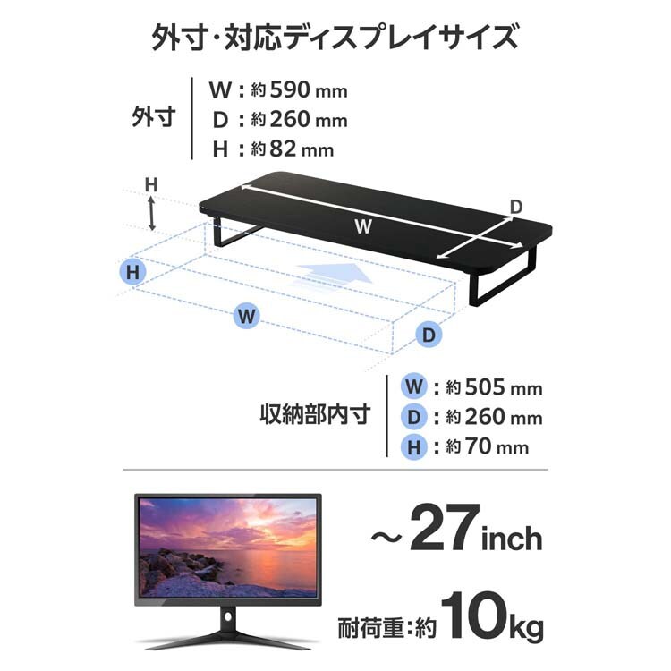 ●27インチまでのディスプレイ(パソコンモニター)に対応したディスプレイスタンドです。