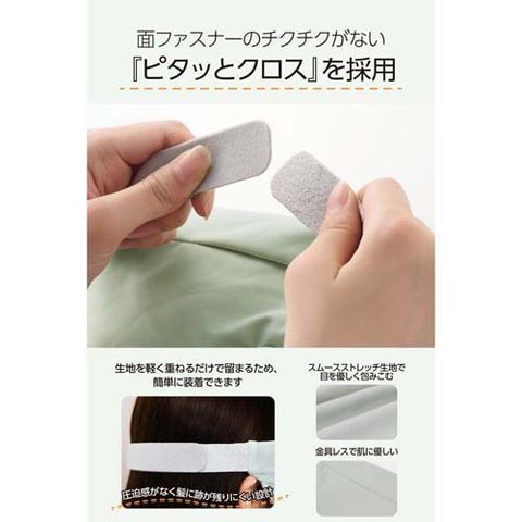 ●やわらかくフィットするベルト仕様で、ゴムバンドのような圧迫感がなく髪に跡が残りにくい設計で、顔や頭部への負担を軽減します。