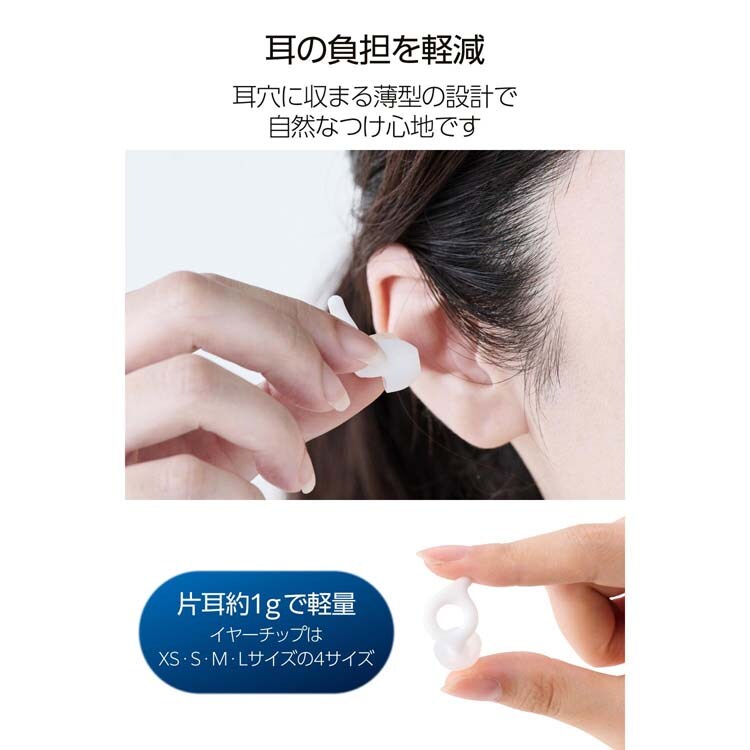●耳穴に収まる薄型設計。横向きで寝ても気にならず、自然なつけ心地です。