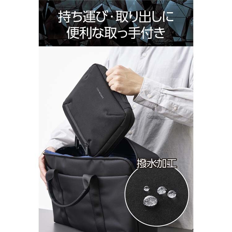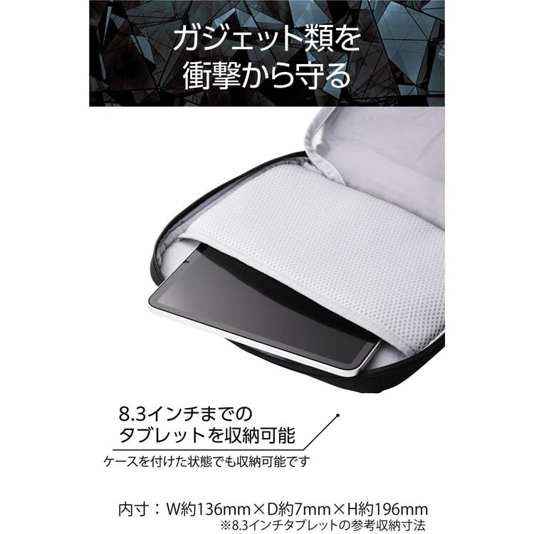 ●8.3インチまでのタブレットを収納できるポケット付き。クッション性があり、持ち運び時の傷や衝撃から守ります。