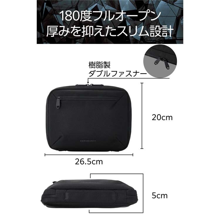 | ・外形寸法:W約265mm×D約50mm×H約200mm ※ハンドル含まず ・内寸:W約136mm×D約7mm×H約196mm ※8.3インチタブレットの参考収納寸法 ・ポケット(前面):ファスナーポケット×1 ・ポケット(背面):オープンポケット×1 ・ポケット(気室内):オープンポケット(ストレッチメッシュ)×4、メッシュファスナーポケット×1、タブレット用ポケット×1 ・カラー:ブラック ・材質:ポリエステル、ポリウレタン ・重量:約250g |