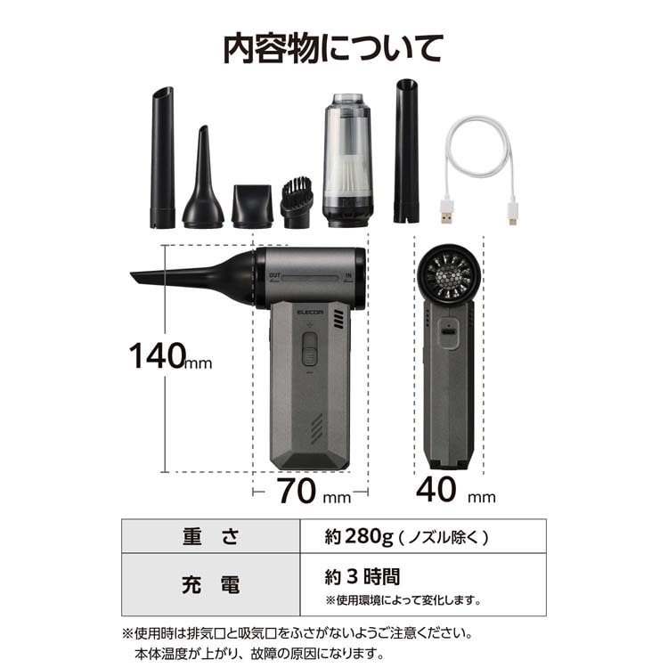 【エレコム 電動エアダスター ブロワー 吸引機能付き 小型 強力 無段階風量 ブラックの商品詳細】