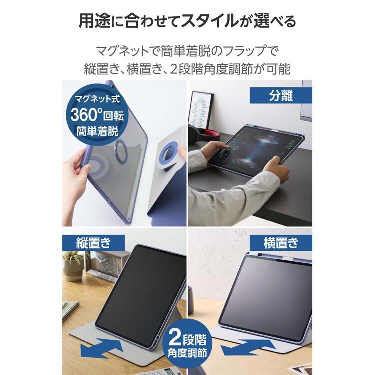 【エレコム iPad Pro ケース 13インチ (M4) マグネット着脱 360度回転 ブルーグレーの商品詳細】