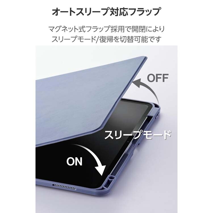 ●持ち歩き時に画面を保護するフラップ付きです。フラップを閉じるとスリープモードになり、開けるとスリープから復帰します。