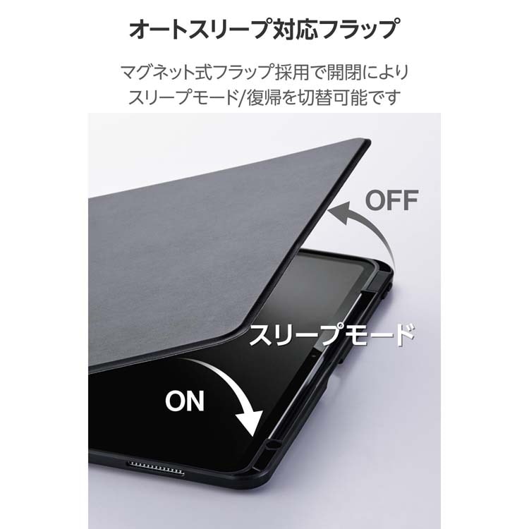 ●持ち歩き時に画面を保護するフラップ付きです。フラップを閉じるとスリープモードになり、開けるとスリープから復帰します。