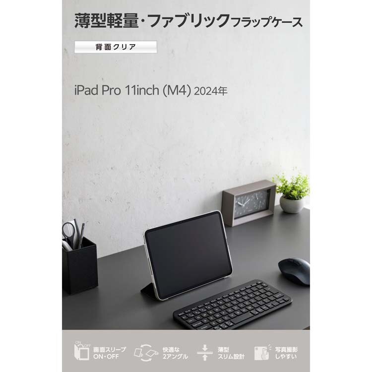 エレコム iPad Pro ケース 11インチ (M4) ファブリックフラップ 薄型 ブラック (1個)