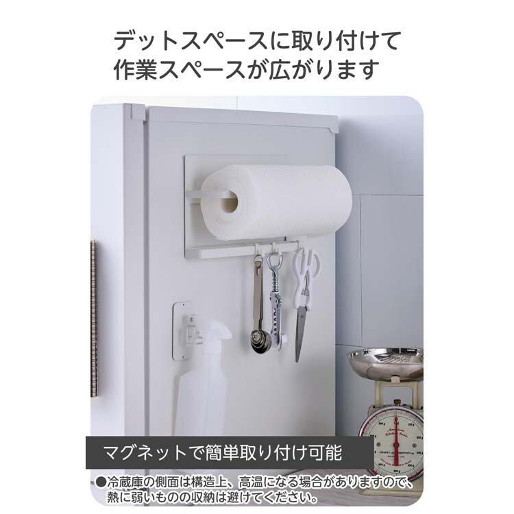 ●壁面や冷蔵庫の側面などにマグネットで簡単に取り付け可能。デッドスペースを有効活用することで、キッチンの作業スペースが広がります。