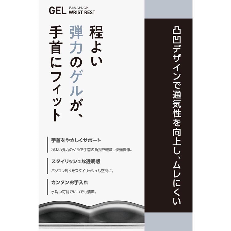 ●程よい弾力のゲルが優しく手首をサポートする、リストレストです。