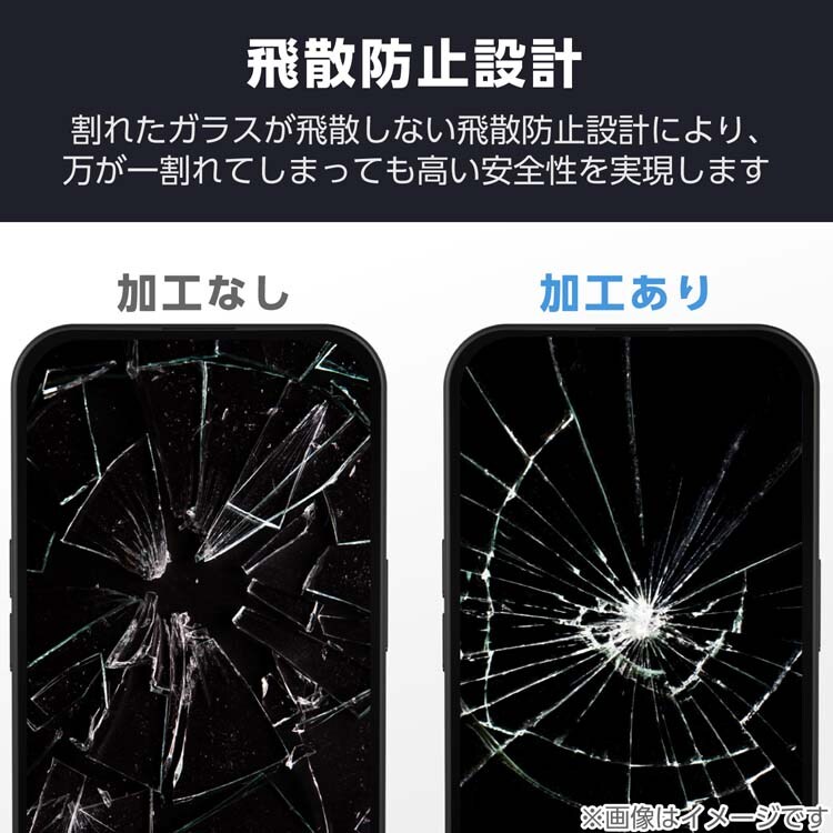 ●ガラスフィルムを衝撃から守るPET素材のフレームが付いており、四つ角が割れない安心設計です。