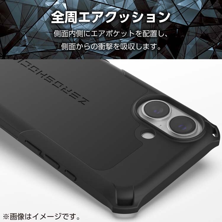 ●磁力装着タイプのワイヤレス充電器に対応した「MAGKEEP」シリーズ。落下時に最も大きな衝撃が予想される四つ角にバンパーを設置し、効率的に衝撃を吸収する耐衝撃性ZEROSHOCKケースです。