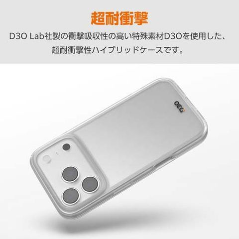 ●側面にミリタリーやモータースポーツで採用されている衝撃保護テクノロジーD3O(R)を使用した、クリアタイプの超耐衝撃性ハイブリッドケースです。