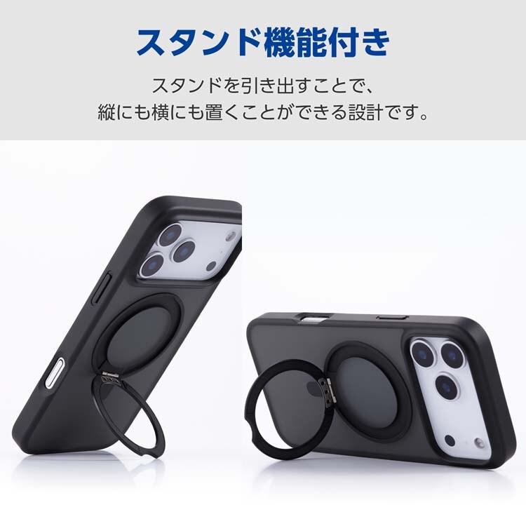 | ・対応機種:iPhone 17 Pro Max ・材質:ケース本体:TPU(熱可塑性ポリウレタン)、ポリカーボネート、アルミ合金、ステンレス、磁石 ・カラー:ブラック ・ワイヤレス充電器対応:可(磁力装着タイプのワイヤレス充電器にのみ対応) |