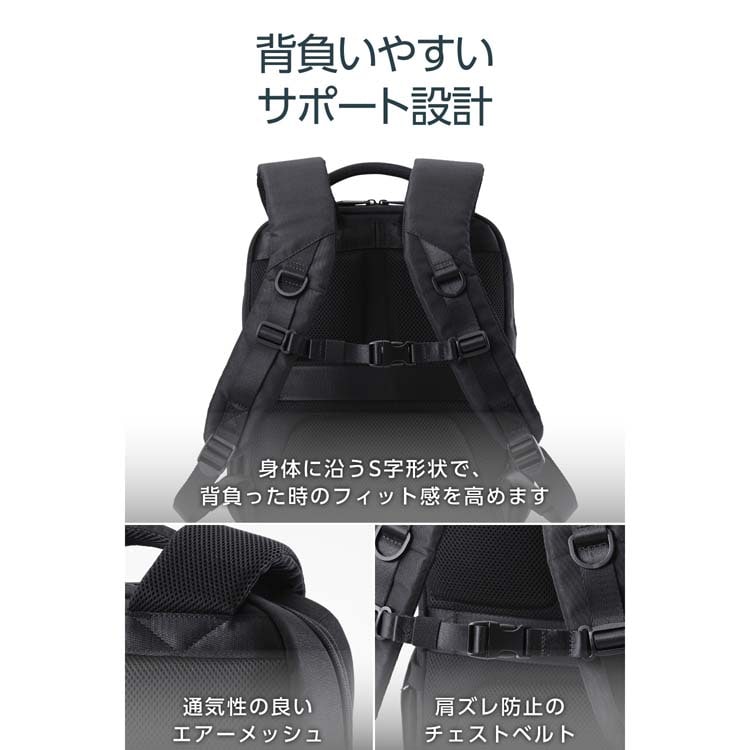 エレコム リュック 13L 衝撃吸収 14インチ 小物ポケット付 撥水 黒 ZSB-BP01P14BK (1個)のレビュー