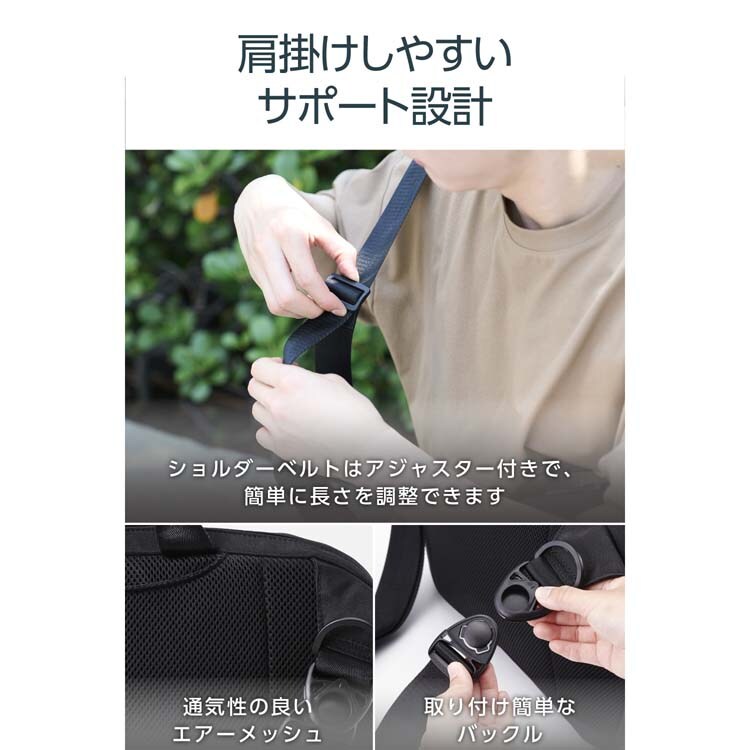●ショルダーベルトはアジャスター付きで、簡単に長さを調整できます。