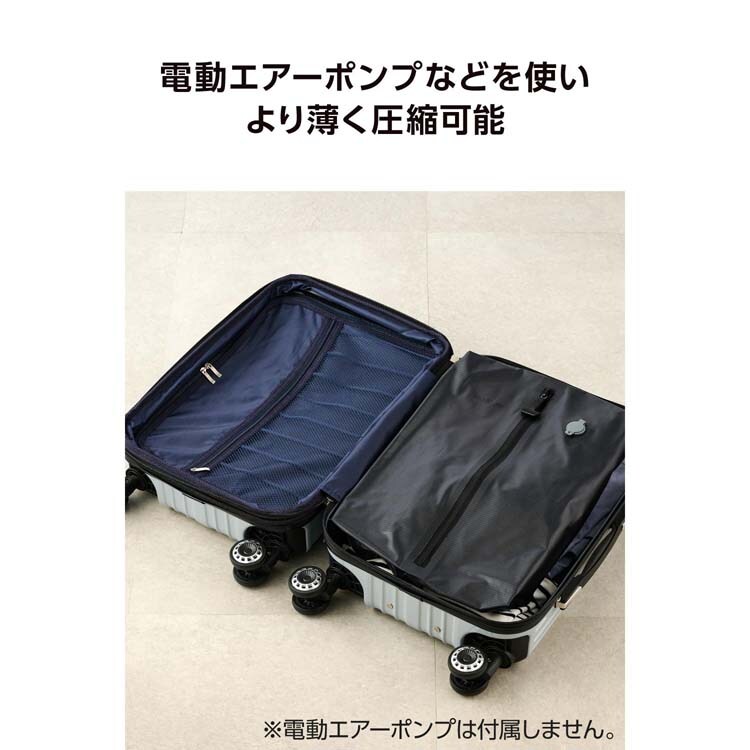 ●市販の電動エアーポンプなどを使うことで、より薄く圧縮可能。バッグやスーツケース内の無駄なスペースを節約し、より多くの荷物を収納できます。