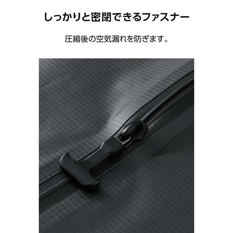 ●しっかりと密閉できる頑丈なファスナーを採用。圧縮後の空気漏れを防ぎます。