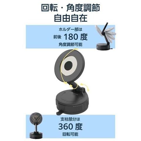【エレコム スマホホルダー 車 MagSafe対応 強力N52磁石 吸盤式 折りたたみ収納 黒の商品詳細】