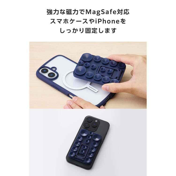 エレコム スマホホルダー 吸盤 MagSafe スタンド付き ネイビー P-TKPTMAGS01NV (1個)