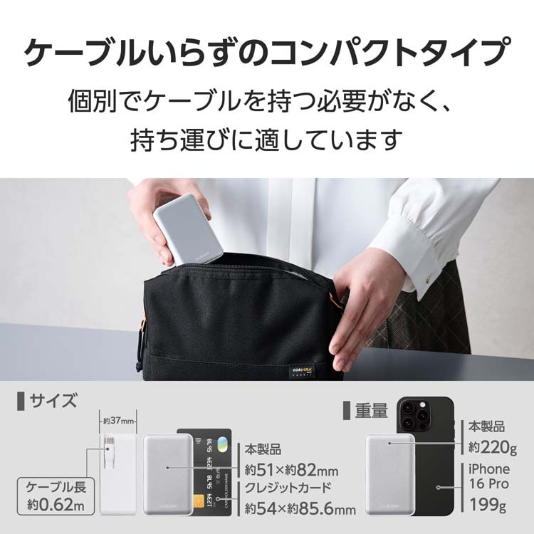 【エレコム 巻取り式USB-Cケーブル一体型 モバイルバッテリー 10000mAh 45W ホワイトの商品詳細】
