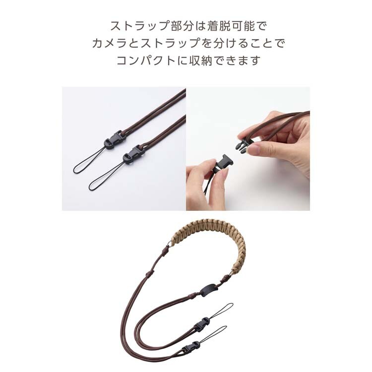 | ・対応機種:instax(チェキ)・写ルンです・他コンパクトカメラ ・サイズ:全長約850~1400mm ・材質:ポリエステル、POM、亜鉛合金 ・耐荷重:重量700g以上の機器には使用しないでください。 ・カラー:ブラウン |