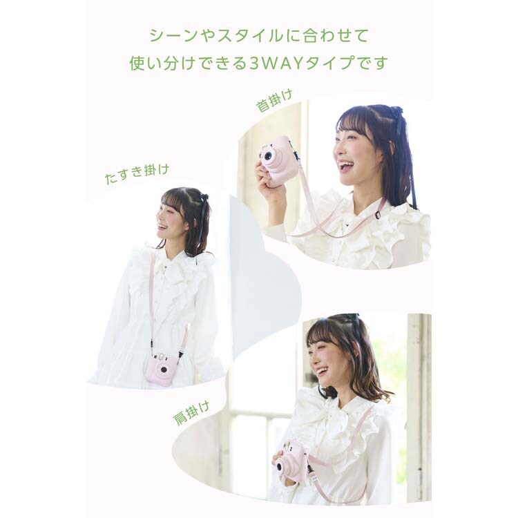 ●「instax」(チェキ)や「写ルンです」など、幅広いコンパクトタイプのカメラに使えるネックストラップです。