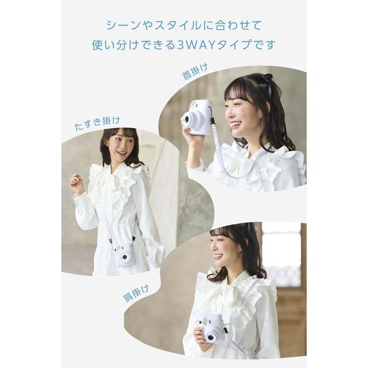 ●「instax」(チェキ)や「写ルンです」など、幅広いコンパクトタイプのカメラに使えるネックストラップです。