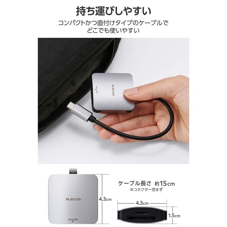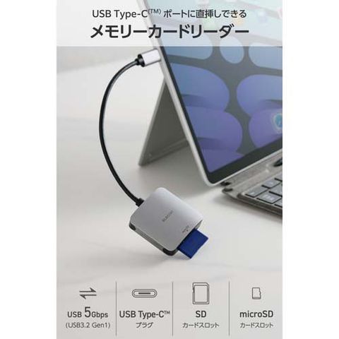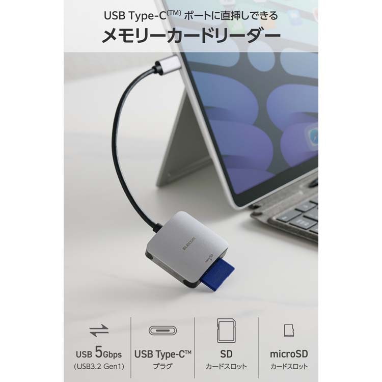 【エレコム SDカードリーダー Type-C 超高速データ転送 ProRes保存対応 シルバーの商品詳細】