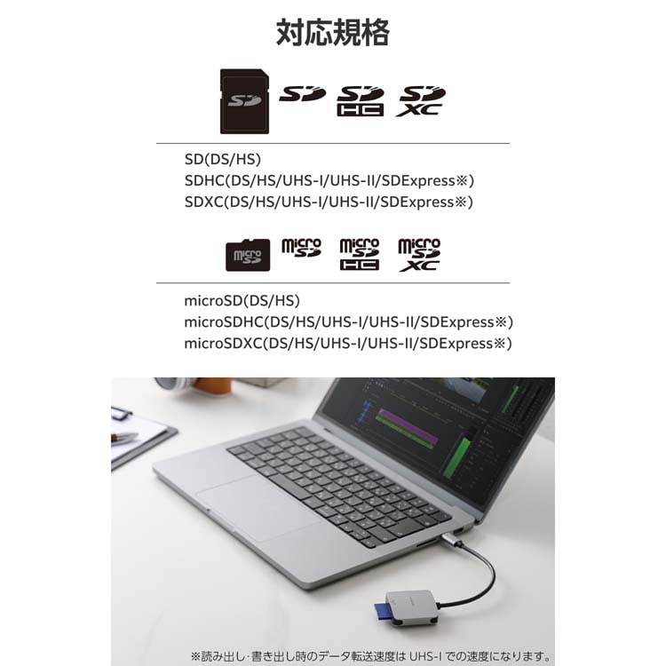 ●SD Express対応カードの読み書きにも対応しています。