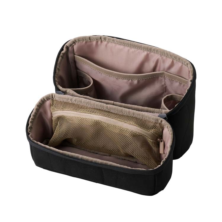 | 外形寸法:幅約200mm×厚さ約65mm×高さ約175mm 内寸:幅約195mm×厚さ約55mm×高さ約170mm 重量:約180g 材質:ポリエステル カラー:ブラック ポケット(気室内):スリーブポケット×4、伸縮仕切り×2、ファスナーメッシュポケット×1 その他:撥水防汚加工(表生地) |