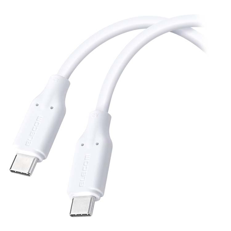 エレコム USB Type-Cケーブル 100W PD ブレーカー搭載 やわらかシリコン 2m 白 (1個)