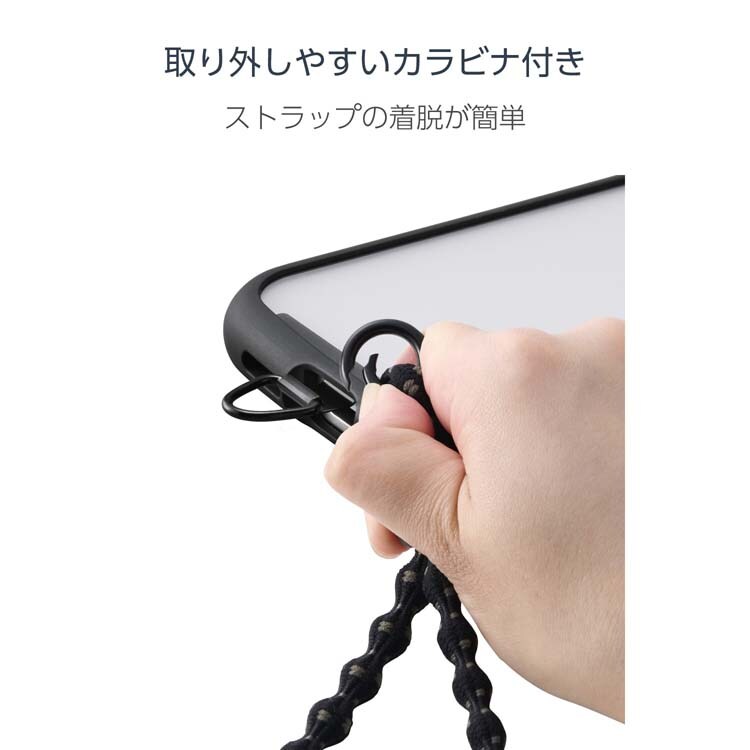 ●取り外しやすいカラビナ付きで、使わないときはスマートフォンを簡単に取り外せます。