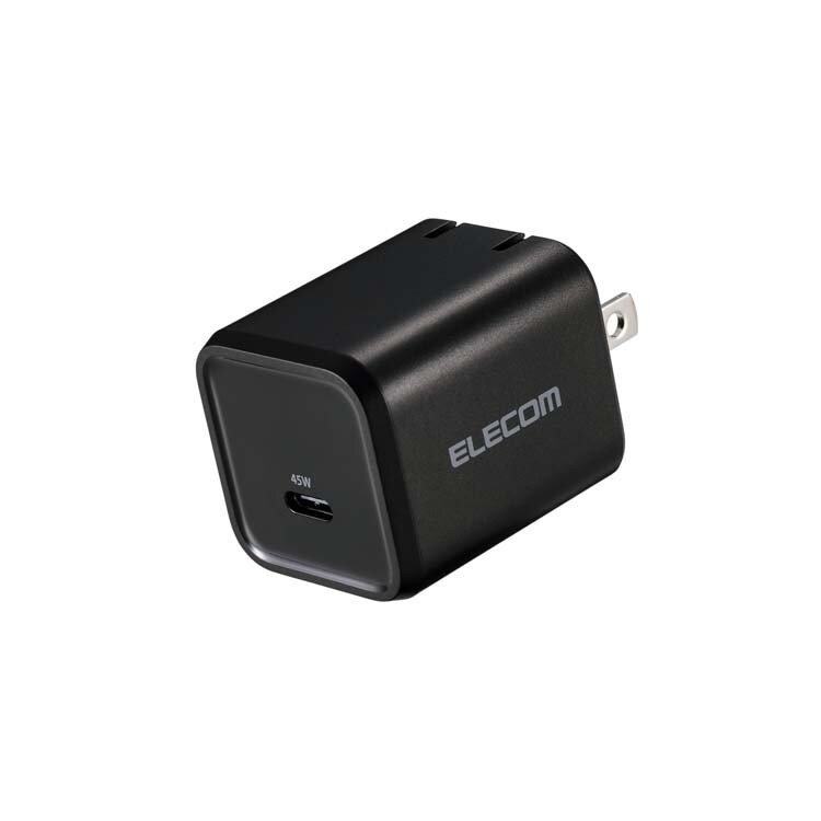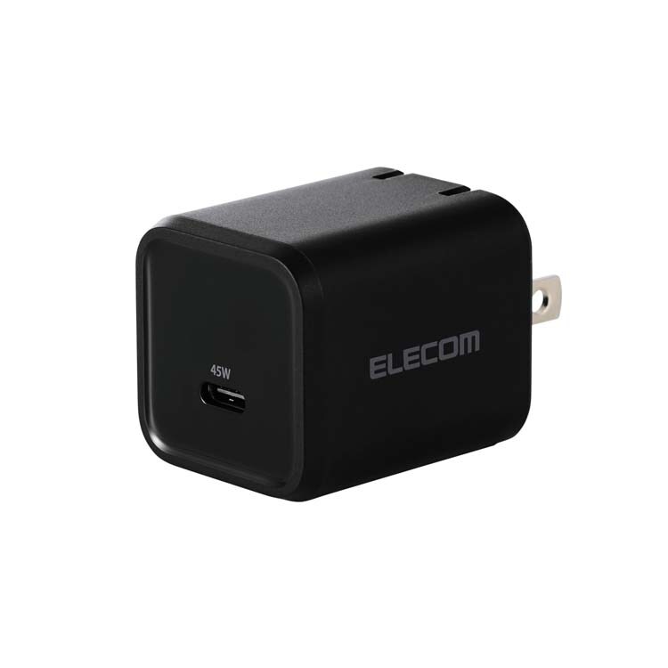 エレコム 45W USB-C 充電器 PD/PPS対応 GaN II採用 折りたたみプラグ ブラック (1個)