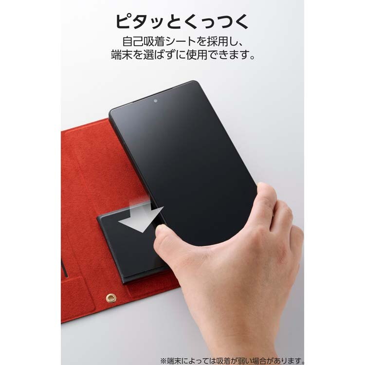 ●スマートフォンがピタッとくっつく自己吸着シートを採用し、端末を選ばずに使用できます。