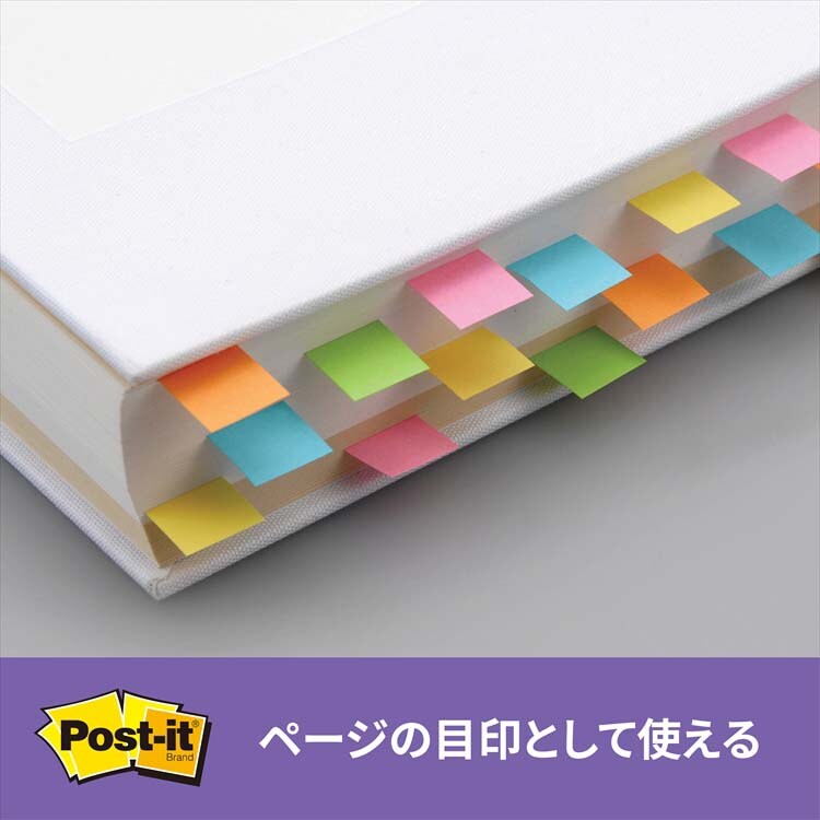 ●強粘着タイプのポスト・イット(R)ノートです。パソコンのデスクトップやキャビネット、樹脂製品などつきにくかった場所にしっかり貼れます。
