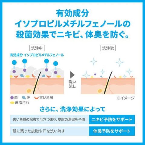 ●爽快クールな洗い心地で、すっきり清潔!薬用デオドラント成分の働きで汗のニオイをしっかり防いで素肌を爽快に洗い上げるボディシャンプー。