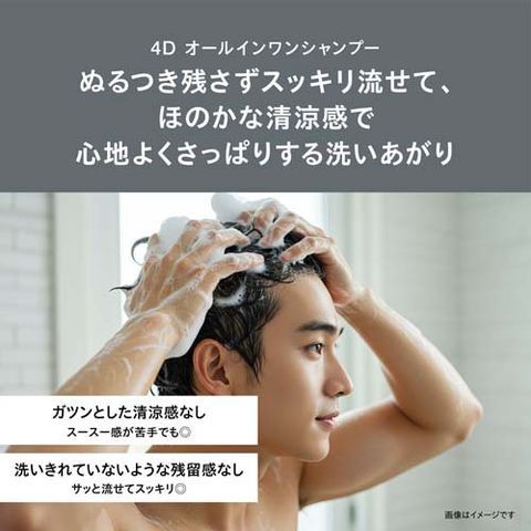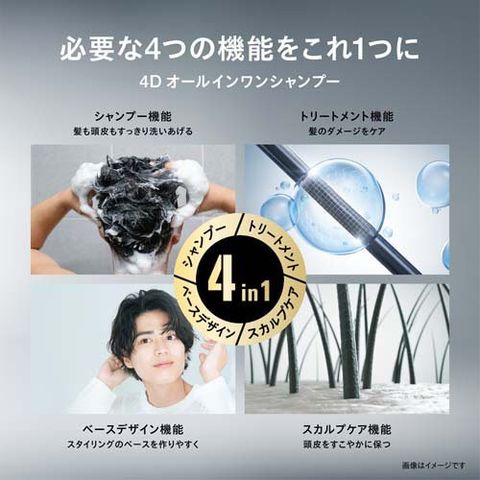 ●4in1機能(シャンプー・トリートメント・スカルプケア・ベースデザイン)のオールインワンシャンプー。