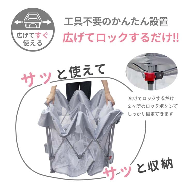 | ・商品重量:約4.3kg ・サイズ:約幅111cm×奥行111cm×高さ69cm(4.3kg) ・対象年齢:5ヶ月~2歳頃 ・フレーム:スチール、カバー:ポリエステル、パーツ:ポリプロピレン |