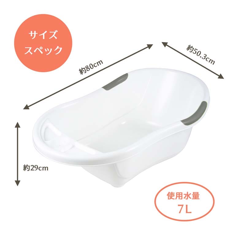 | ・商品サイズ:約幅80cm*奥行き50.3cm*高さ29cm 1280g ・容量:39L(満水時) ・対象:0~12ヶ月 ・材質:(本体)ポリプロピレン、(手置き・止水栓)熱可塑性エラストマー |