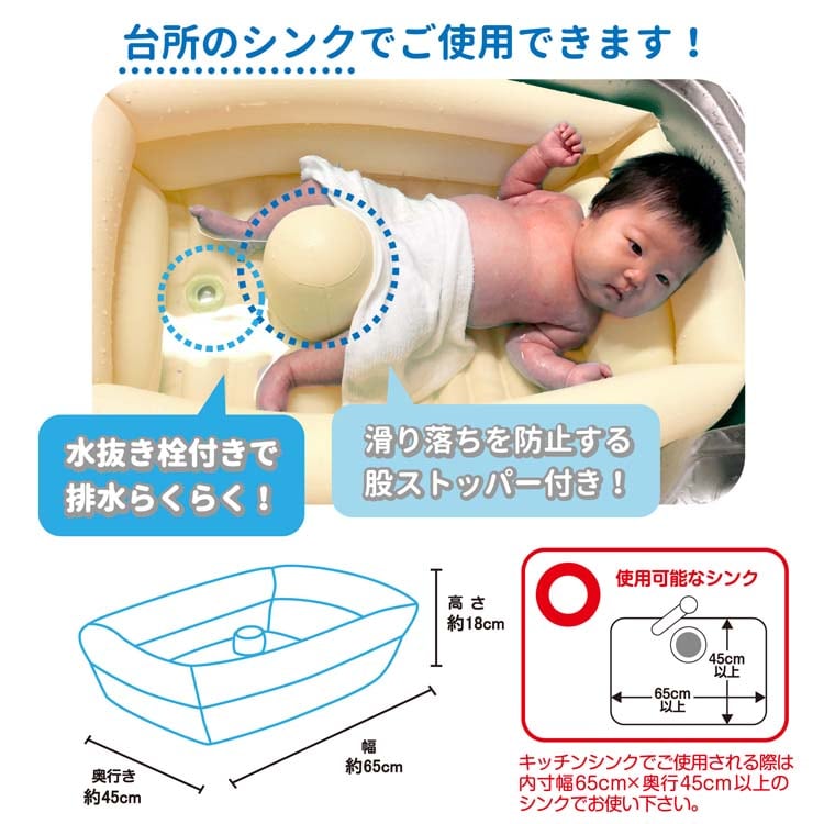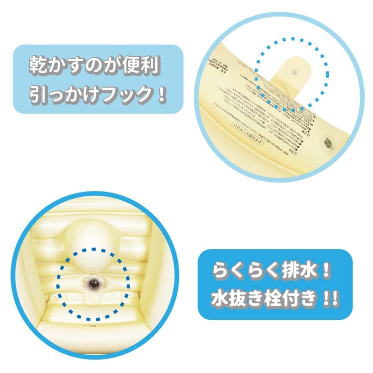 | ・商品サイズ:空気注入時 約幅65×奥行45×高さ20cm ・パッケージサイズ:幅20×奥行6×高さ29.5cm ・対象年齢:0ヶ月~6ヶ月頃 |